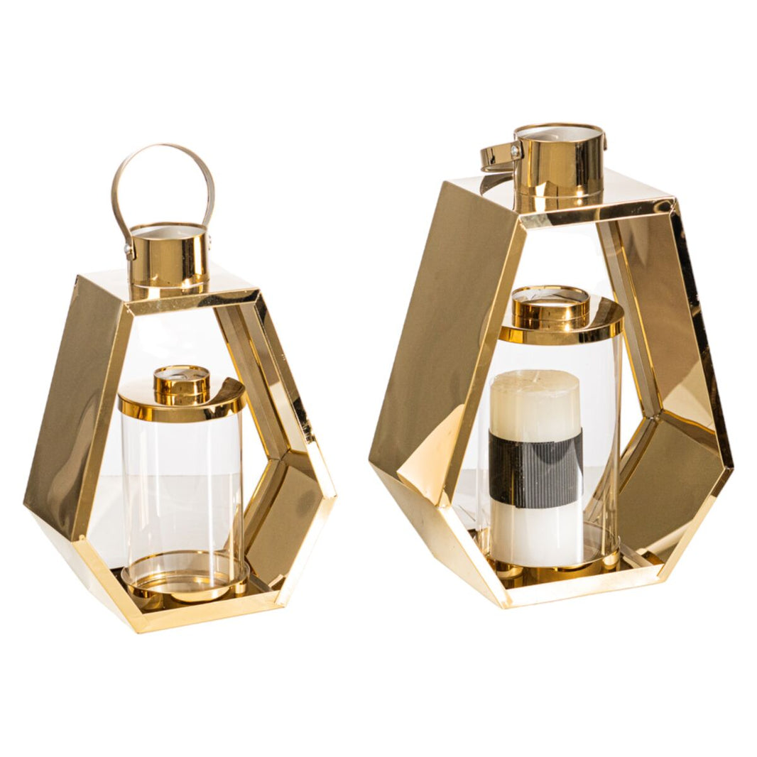 Laternen-Set Romimex Gold Metall Glas 24 x 34 x 13 cm 2 Stücke